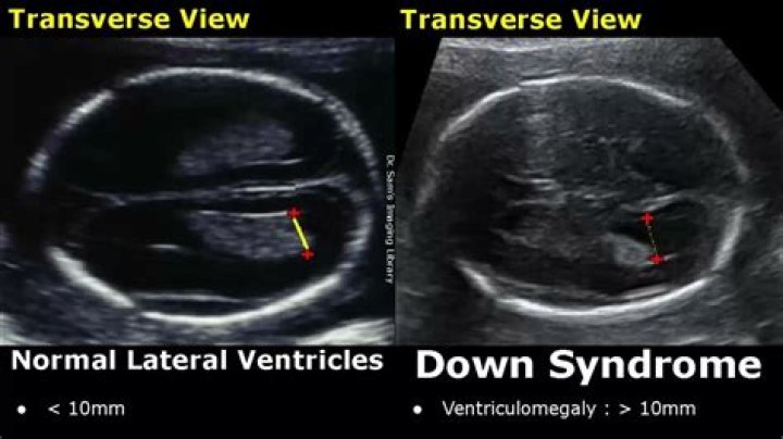 Certain features detected during a second trimester ultrasound exam are potential markers for Down's syndrome, and they include dilated brain ventricles, absent or small nose bone, increased thickness of the back of the neck, an abnormal artery to the upper extremities, bright spots in the heart, 'bright' bowels, mild ...Can Down syndrome be missed on ultrasound?