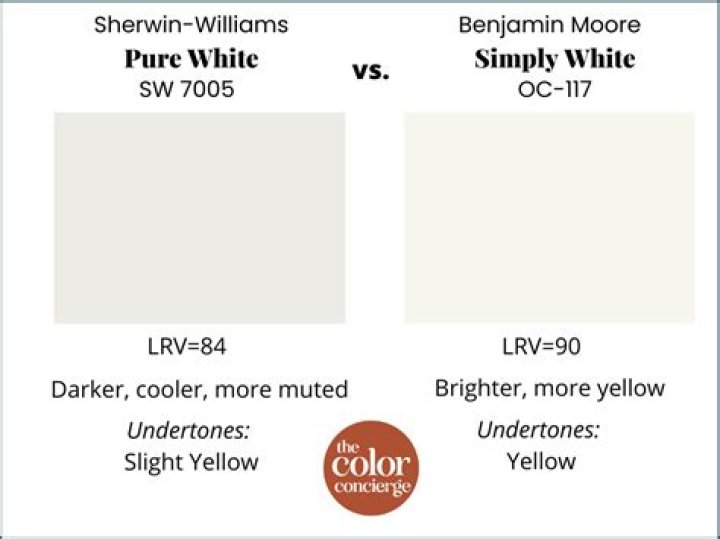 What is the difference between Sherwin Williams pure white and Benjamin Moore simply white?