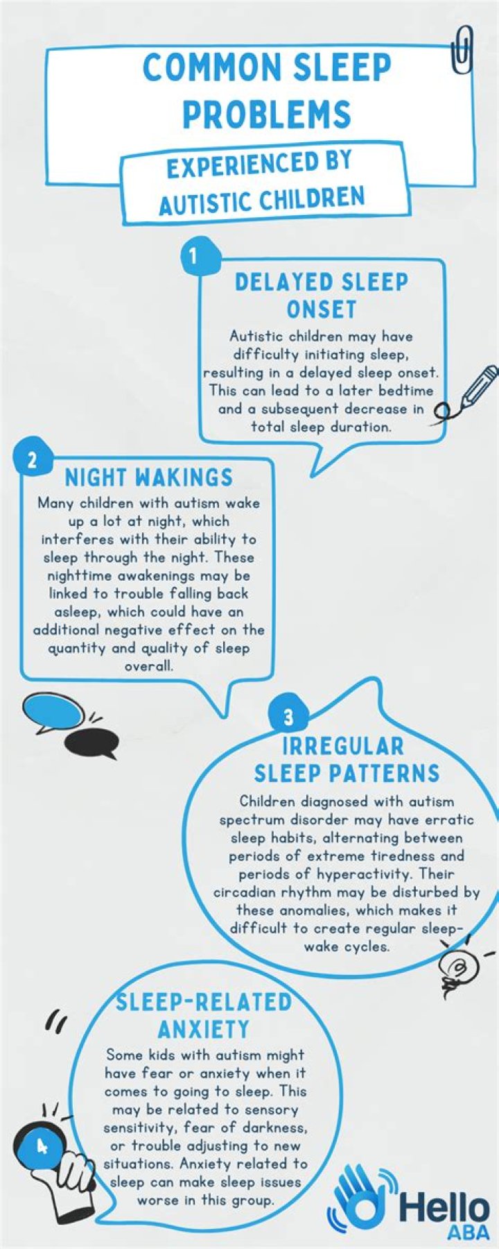 Autistic children sometimes have more restless sleep than other children. In particular, they might be prone to body-rocking, head-rolling and head-banging. Although quite common, restless sleep can also be a sign of some less common sleep disorders.Do weighted blankets help autism?