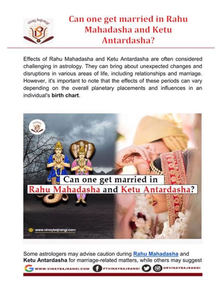 It gives issues like dishonesty, miscommunication, and more in married life. If you are planning to get married then you can face severe trouble and delay in marriage. Taking astrology helps to make your married life happy and peaceful in the Rahu effect.Can someone get married during Ketu Mahadasha?