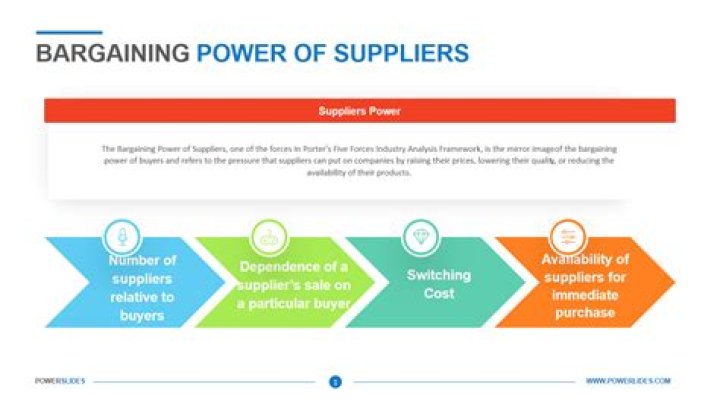 What is it? Power of Suppliers. Suppliers have the power to influence the price as well as the availability of resources/inputs. Suppliers are most powerful when companies are dependent on them and cannot switch suppliers because of high costs or lack of alternative sources.What's the meaning of bargaining power?