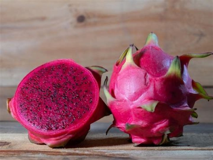 Dragon fruit, also known as pitaya or pithaya, are a bright pink tropical fruit that are striking to look at. Usually, they are found with pink skin and white flesh on the inside with small black seeds, like kiwifruit. They are also grown with pink skin and bright pink flesh on the inside (pictured below).