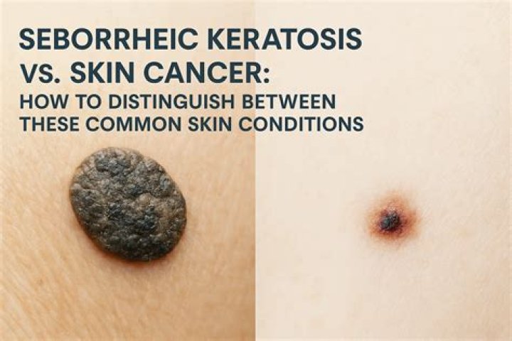Seborrheic keratosis is a benign growth on your skin. The growths are not cancer. Usually these growths only cause cosmetic problems. They are very common in older people.How can you tell seborrheic keratosis from melanoma?