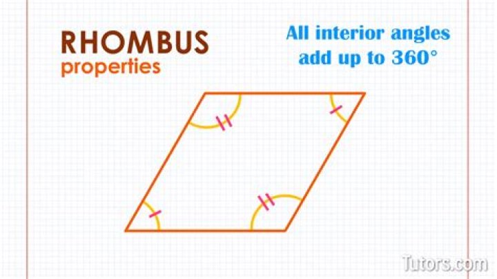 Opposite interior angles of a rhombus are congruent. The four interior angles of a rhombus always add up to 360°.What does a rhombus equal to?