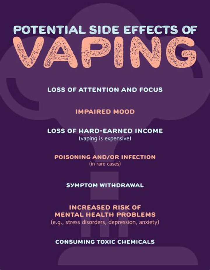 The study's authors believe these changes may lay the groundwork for depression. Nicotine alters how users process a pleasure-causing brain chemical called dopamine, and it also may make users more sensitive to stress and less able to cope with stress when it occurs.What are 5 negative effects of vaping?
