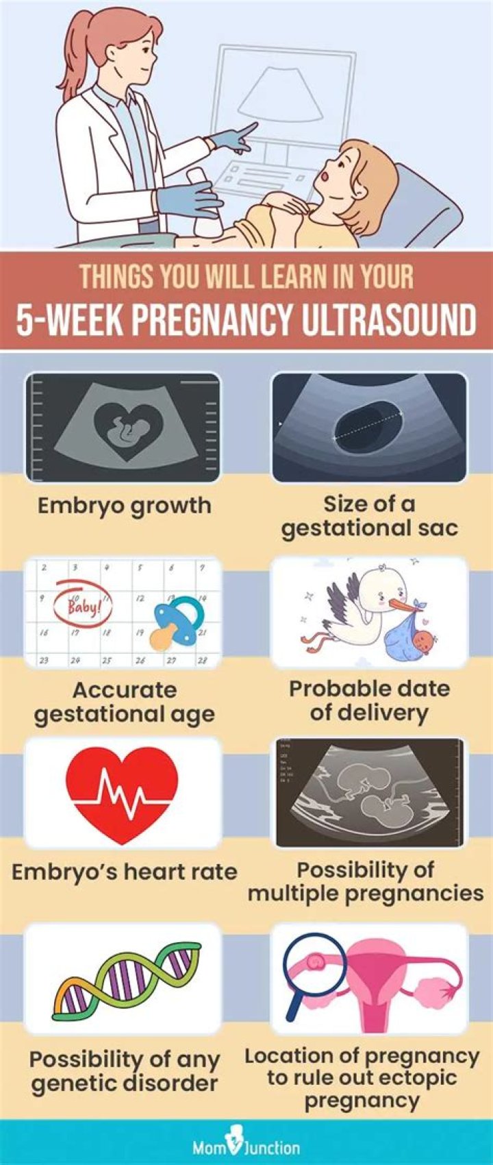 Some symptoms you may notice at five weeks pregnant include fatigue, nausea, and tender breasts, and they're all quite common. You might like to read up on the pregnancy hormone hCG as it plays an important role in pregnancy.Can you see a baby at 5 weeks 5 days?