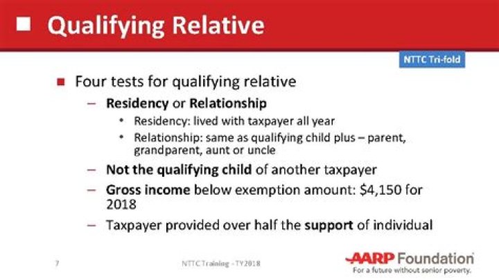 The qualifying relative must either live in the taxpayer's household all year or be related to the taxpayer as a child, sibling, parent, grandparent, niece or nephew, aunt or uncle, certain in-law, or certain step-relative.What are the four tests for a qualifying relative quizlet?