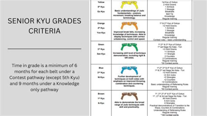 The Kyu Grade system is a distinctive feature of judo with promotion to different coloured belts based on technical ability, knowledge and understanding as well as supplementary knowledge of Japanese terminology.What does kyu mean in martial arts?